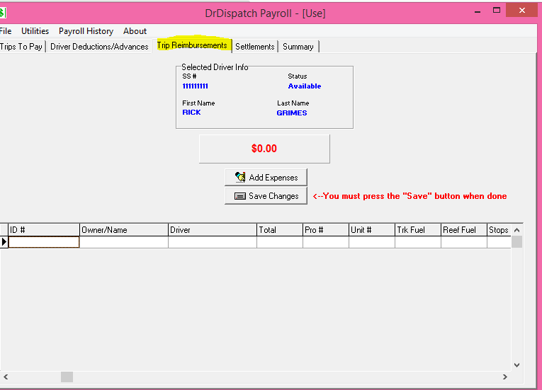 If you use Dr. Dispatch to process driver payroll, we recommend entering expenses from the payroll menu to avoid having to enter duplicate data.