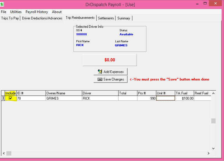 There are two ways to add expenses in Dr. Dispatch: from the Load Entry Screen and also directly from the Payroll Menu.